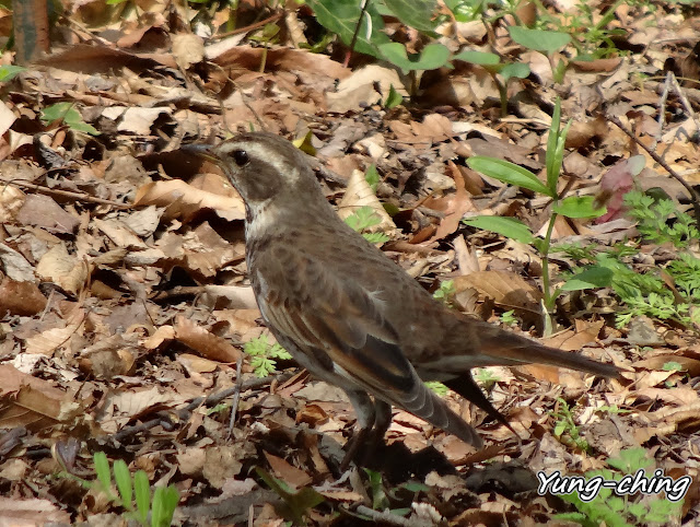 這隻斑點鶇原本是在覓食的,可是當牠發現我時卻異常冷靜竟還站在原地,